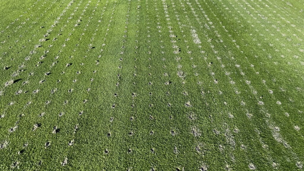 Selv om greenene kan se litt "prikkete" ut rett etter arbeidet, er dette et viktig løft for kvaliteten. Med Top Changer sikrer vi raske, jevne og sunne greener – til glede for alle medlemmer og gjestespillere.